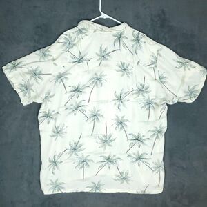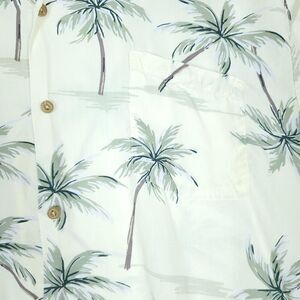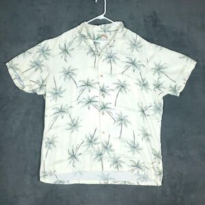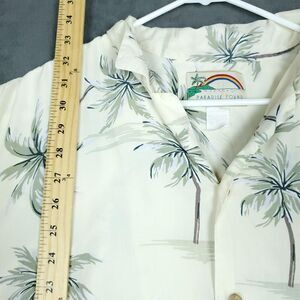 Paradise Found Hawaiian Shirt Mens 3XL Cream Palm Tree Print Short Sleeve Aloha