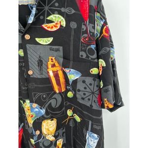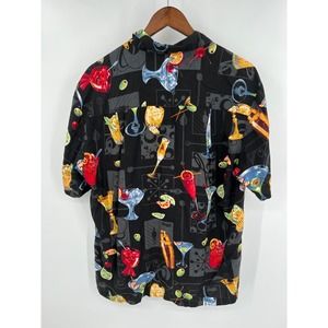 Paradise Found Honolulu Hawaii tropical martini button front hawaiian shirt L?