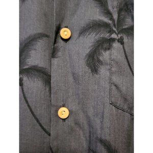 Paradise Found Men's Vintage Hawaiian Short Sleeve Shirt Palm Trees Blue Medium
