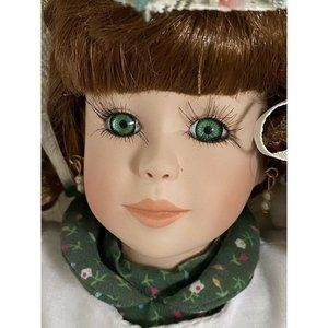 Paradise Galleries Porcelain "Erin - The Legend of the Blarney Stone" doll. New With Out Box. Designer Cindy Shafer, 1995 #597-M hand written on back of doll's neck. From the Lads & Lasses of Ireland Collection.” 14.5” The perfect gift for a sweet, Irish Lass! Treasury Collection Paradise Galleries "Erin" by Cindy Shafer Porcelain Doll 14.5" #597-M. Condition is Used BUT in Like New condition. PLEASE SEE ALL PHOTOGRAPHS. Doll stood in a little girls display case.....display only.....never played with. Comes from a smoke free environment. No cracks, marks or blemishes on porcelain. Clothes and accessories have no stains, tears or markings. Includes rabbit staff. Includes Stand.
