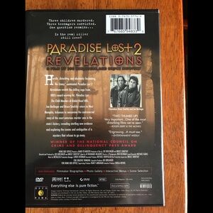 Real life HBO Documentary Series Paradise Lost The child murders of 1993 at Robin wood hills.Real life footage very rare 2 dvd Set.The best real life documentary I have ever seen!!!280 Minutes plus tons of bonus extras!Both DVDs I bought new and viewed 1 time.Both have inserts and are perfect condition.This documentary is stunning,remarkable and gripping!Emmy Award Nominee.Own this awesome Set today🌷