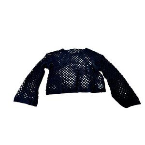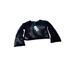 Paradise Medium Crop Open Knit Long Sleeve Beach Top NWT Vacation Black