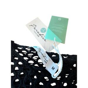 Paradise Medium Black Crop Open Knit Long Sleeve Beach Top NWT