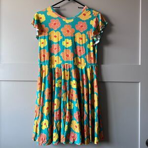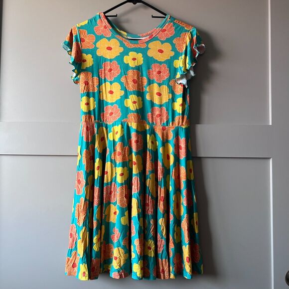 Paradise Now Hawaii Floral Babydoll Dress Girls Youth Large Blue Orange Yellow Beach Bamboo Beach Bamboo Hawaiian Aloha Maui