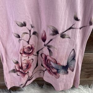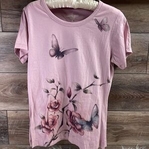 Paradise Shores Ladies Butterfly Tshirt Top, Size Small,Pink w/ Butterflies