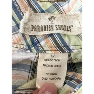Paradise Shores Size 12 Flat Front Plaid Shorts Colorful Button Zip Casual