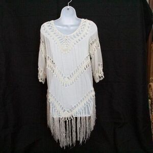 Paradise USA 70s Style Hippie Boho Gypsy Festival Long Crochet Vest Fringes M/L