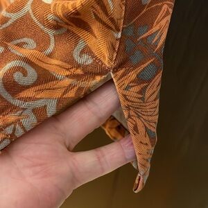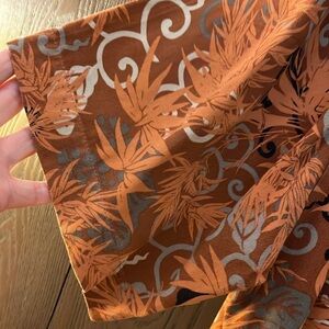 Paradise by Axis men’s 100% silk short sleeved Hawaiian shirt. Browns, oranges and gray floral design. Size Large.