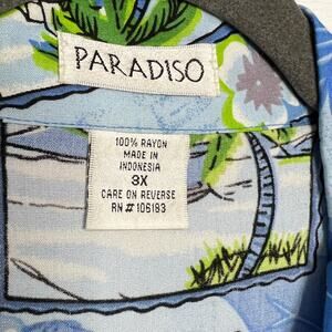 Paradiso Postcards Hawaiian Shirt Blue Embellished Plus Size 3X