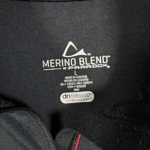 Paradox 1/4 Zip Pullover Mens L Black Merino Blend Dri Release W/ Fresh Guard