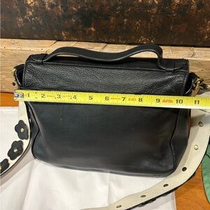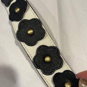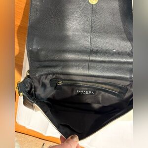 A few small scratches shown in pics, but overall excellent condition. Really fun strap that can be used with other bags as well. Paradox black and white leather purse with flower strap.