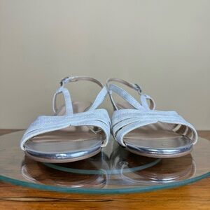Joleen from Paradox London is a strappy sandal with a 2.25 inch heel and made with a soft shimmer material. Great for any special occasion, Joleen has a synthetic sole material and an adjustable strap with buckle.