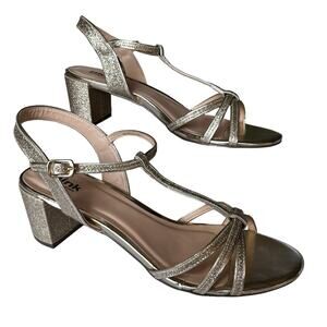 Paradox London PINK Collab “Sadie” GOLD Glitter Sandals 9.5 Glam Formal 9.5