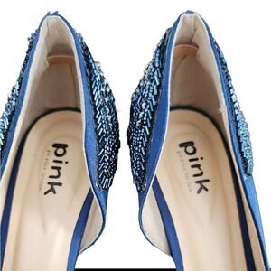 Paradox London Pink Blue Satin Embellished Beaded Peep Toe Heels