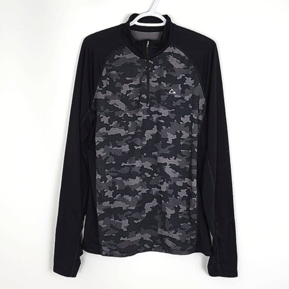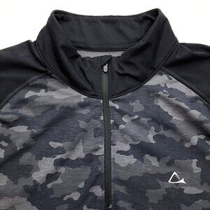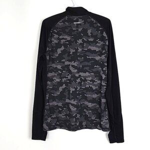 Excellent pre-owned condition, Paradox men's Dri-Release black merino wool blend pullover long sleeves top with quarter zip up, camo print and thumbholes - perfect for layering and added warmth, size Large.