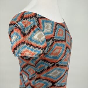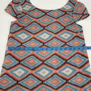 Paraella Womens Geometric Cap Sleeve Sheath Dress Size M Blue Coral Tan