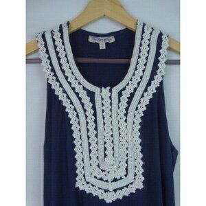 Paraella Women's Tank Top Blue Size Medium Sleeveless Embroidered Tunic Shirt