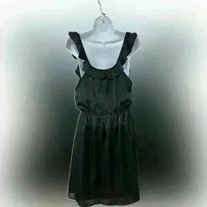 ๐Paraella black satin dress ruffle straps cinched waist size medium
