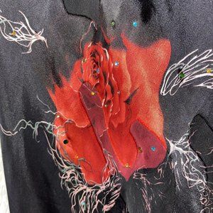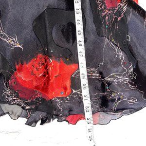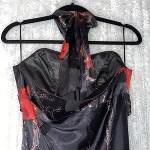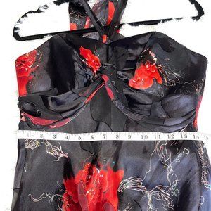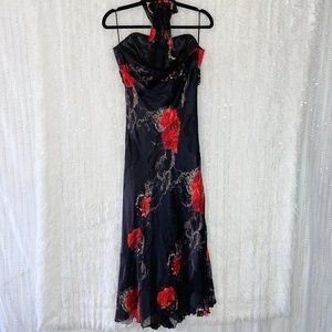 Paraf Sweetheart Halter Maxi Dress Size 12 (42EU) Black Red Floral Roses Satin Rainbow Jewel Rhinestones