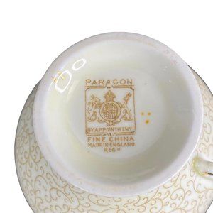 Markings read: By Appointment To Her Majesty the Queen China Potters Paragon Fine Bone China England Reg Paragon started as the Star China Company in 1897, founded by Hugh Irving and Herbert Aynsley (great-grandson of John Aynsley who founded Aynsley China). The company existed as Paragon China Company Limited from 1919 - 1960. The company changed hands several times in the 1960s and finally finished as part of the Royal Doulton group. Paragon is known for the many royal warrants, starting in 1926 and concluding with Queen Elizabeth II granting a Royal Warrant of Appoint in 1953 shortly after her coronation. Please bear in mind that these are vintage items and there may be small imperfections from age or flaws from production. I try to make my photos as clear as possible and carefully examine and describe each item. Items are packed with care so that they arrive safely to you