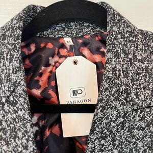 Paragon NWT Black/White Tweed 3 Button Lined Trench Coat Size Medium