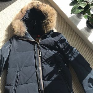 Good used condition from a smoke free and pet free home. Navy in color with removable fur hood attachment.