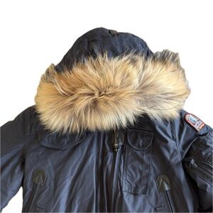Multi pocket detail | removable fur trim | duck down for superior warmth | dark navy | excellent condition | unisex