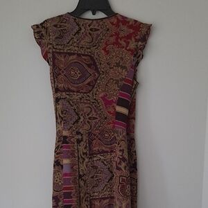 Elevate your wardrobe with this stunning silk dress. Featuring a vibrant multicolor pattern, this dress is perfect for any occasion. The rich blend of colors adds a touch of elegance and style.
