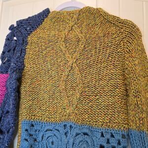 Parallel Peruvian Alpaca Wool Bold Crochet Bell Sleeve Sweater Unique and Rare