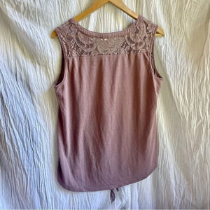 Parallel Skies Mauve Taupe Lace Tie Tank Blouse, L