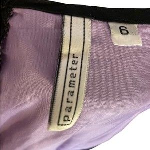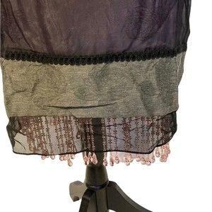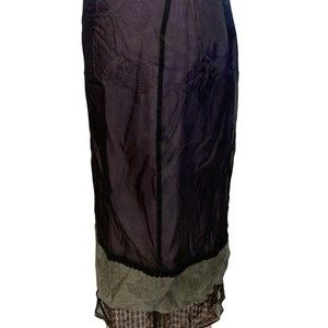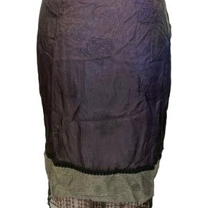 Parameter 100% silk and beaded crêpe skirt. Rose embellishment in the fabric Shades of purple and gray.