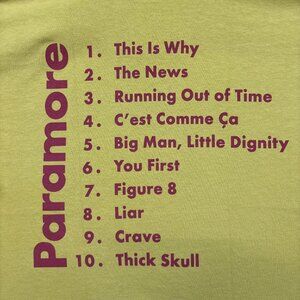 Paramore This Is Why Album Track-listing Pop Punk Band Tee M approx measures 20 inches pit to pit 26 inches long Never worn firsthand overstock in great condition has markings from the manufacturing process that could possibly wash off
