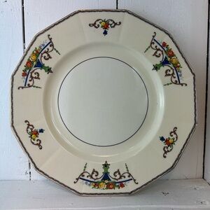 Bring timeless English charm to your collection with this beautiful piece from Myott Staffordshire in the Paramount pattern. Featuring an elegant flowers in vases design with a distinctive multisided shape and finished with a rich gold trim, this discontinued pattern is a true treasure for collectors and entertainers alike.