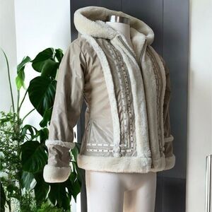 Paramount Tan Cream Hooded Faux Fur Coat Peacoat Small Penny Lane Princess