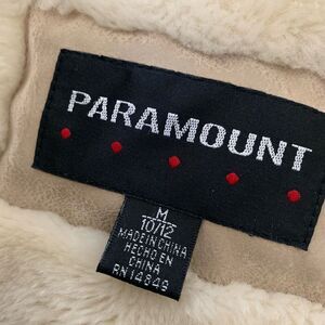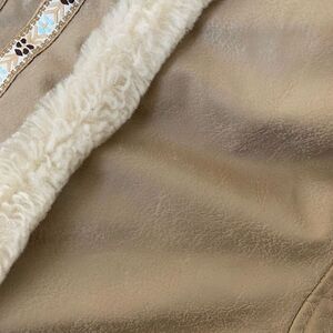 Vintage Paramount fake fur and faux leather Penny one style pea coat. Tan faux leather with a contrasting cream collar, cuffs, and hem. Zipper. Floral trim.