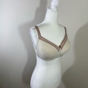 Paramour Sz 36D bra cream with a plum lace and plum satiny adjustable straps