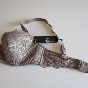 Paramour by Felina Sophia full figure balconette counter bra In Mink Lace NWT