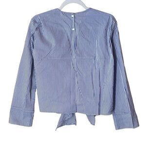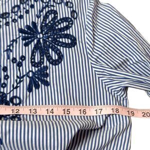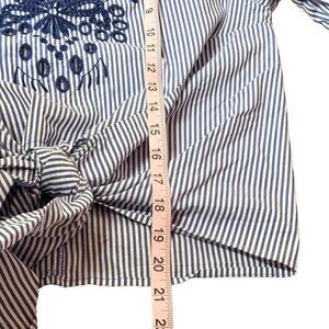 Paraphrase Embroidered Pinstripe Blouse Tie Front Cuffed Long Sleeve S