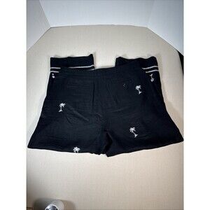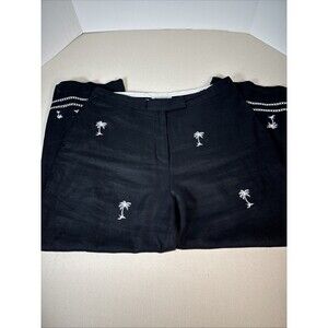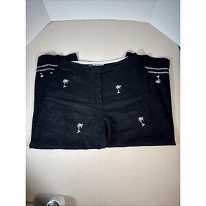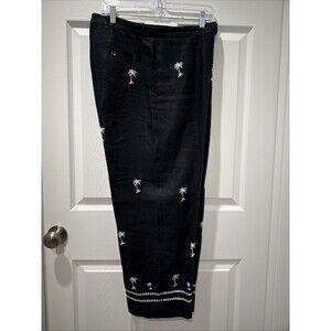 Paraphrase Palm Trees Embroidered Wide Cropped Black Linen Boho Women's 14