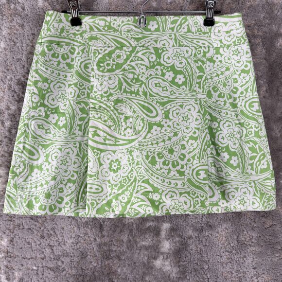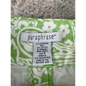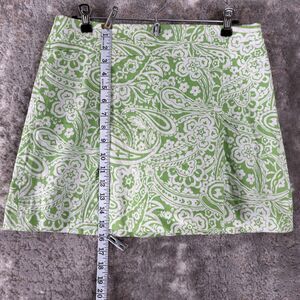 Paraphrase Size 8 Paisley A Line Mini Skirt Green Zip Cotton Blend Stretch