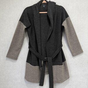 Paraphrase Sweater Womens Small Gray Hooded Belted Wool Colorblock Cardigan