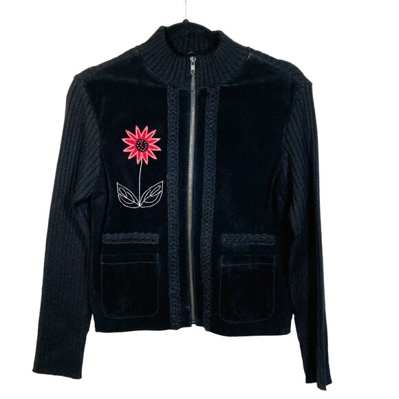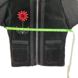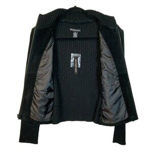 Paraphrase Vintage Cardigan, Sz L (measures smaller), Black Suede Wool Blend NEW