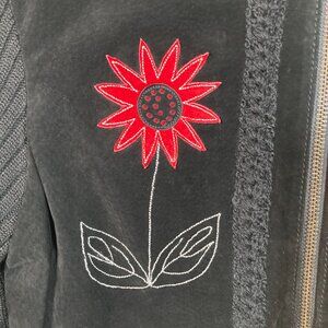 Black with large red suede applique-embroidered flower