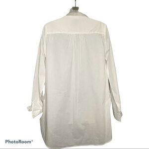 Two front pockets, tab sleeves, split V neckline, slightly longer in back