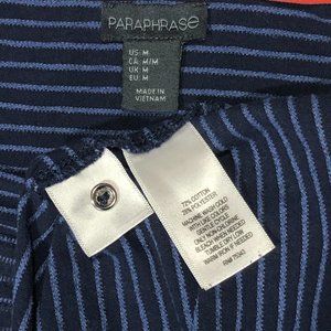 Paraphrase Womens Sz M Navy Blue Pullover 3/4 Sleeve Striped Bodycon Shift Dress. Excellent pre-owned condition. For measurements and details, please carefully review ALL the pictures before purchasing as all items sold are exactly as shown in the pictures!