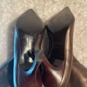Paraphrase leather metallic Bronze ankle boots pointed toe side zipper 3”heels size9M .pre owned in good used condition normal wear see all pictures any questions please message.