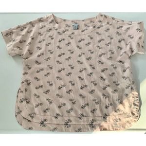 Paraphrase top size medium bicycle print short sleeve pale pink