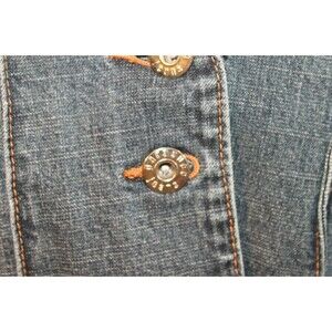 Parasuco ergonomic jeans Womens Ruffled Jean Jacket Denim Coat Rhinestones Size L C1