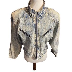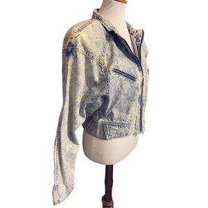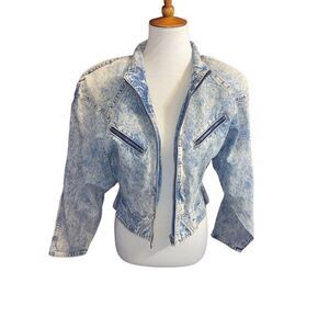 Parasuco RARE Vintage 1980s Acid Wash Cropped Denim Jacket 100% Cotton w/Shoulde