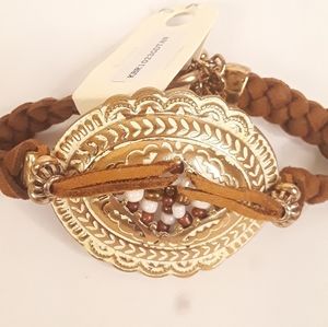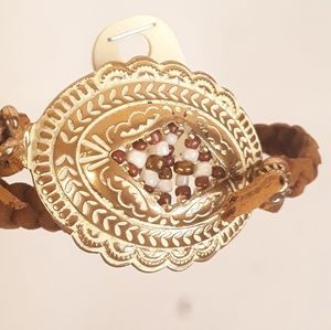 Parati Bracelet. Brown and gold tone with beading. Stretches to 11" New!